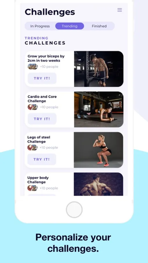 1. Create your own challenges or choose one already predefined.