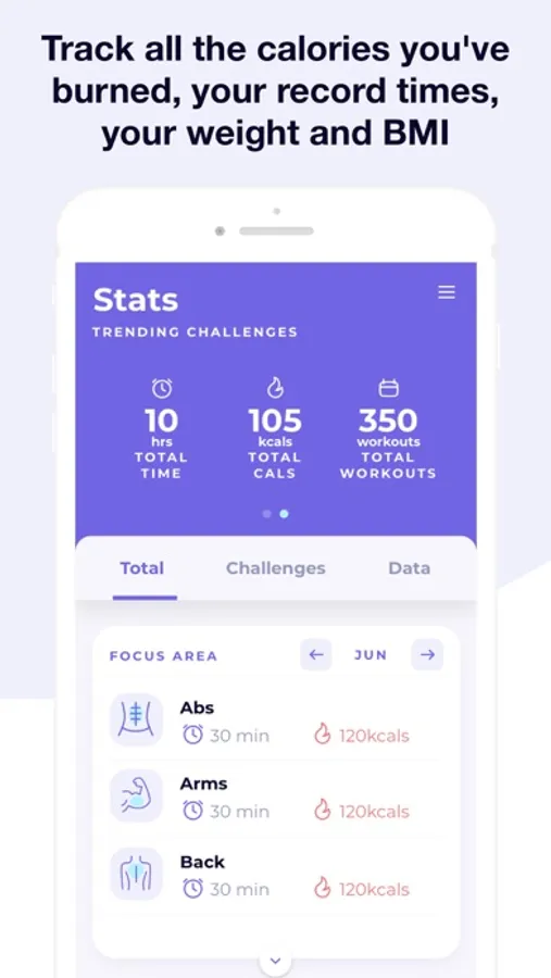 You program which days you want to do your challenge, and the app will send you reminders so that you meet your goal. The app will guide you through each of the exercises, indicating the time and calories burned in each one.