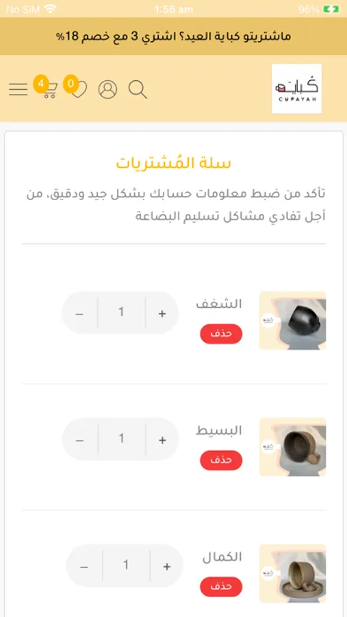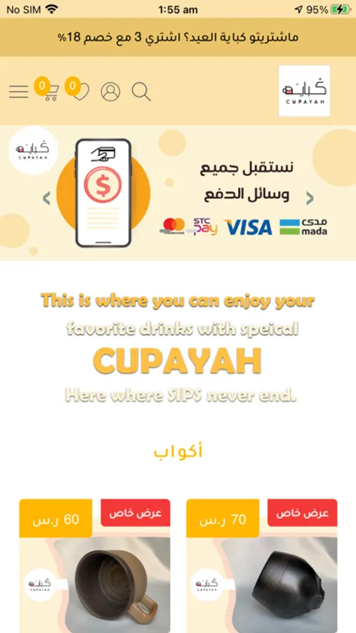 التطبيق الخاص بمتجر كُباية. عروض خاصة، تصاميم رائعة، أسعار تنافسية.