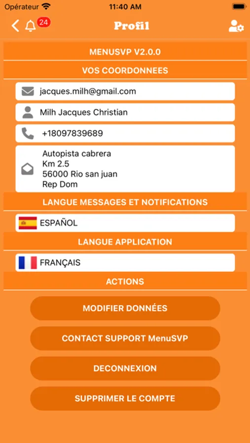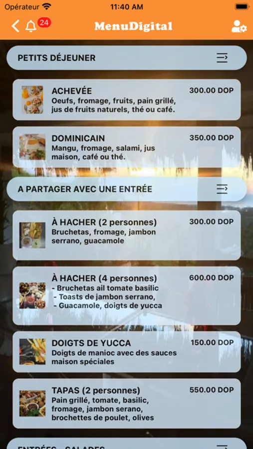 Application pour les clients des restaurants et hotels/villas affilliés MenuSVP