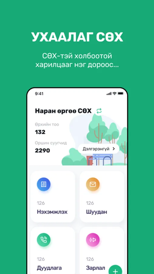 Оршин суугч хоорондоо мэдээлэл солилцох, зар тавих, СӨХ талаас оршин суугчдад дуулгах зарлал, анхааруулга болон бусад хэрэгцээт мэдээллийг цаг алдалгүй илгээнэ.