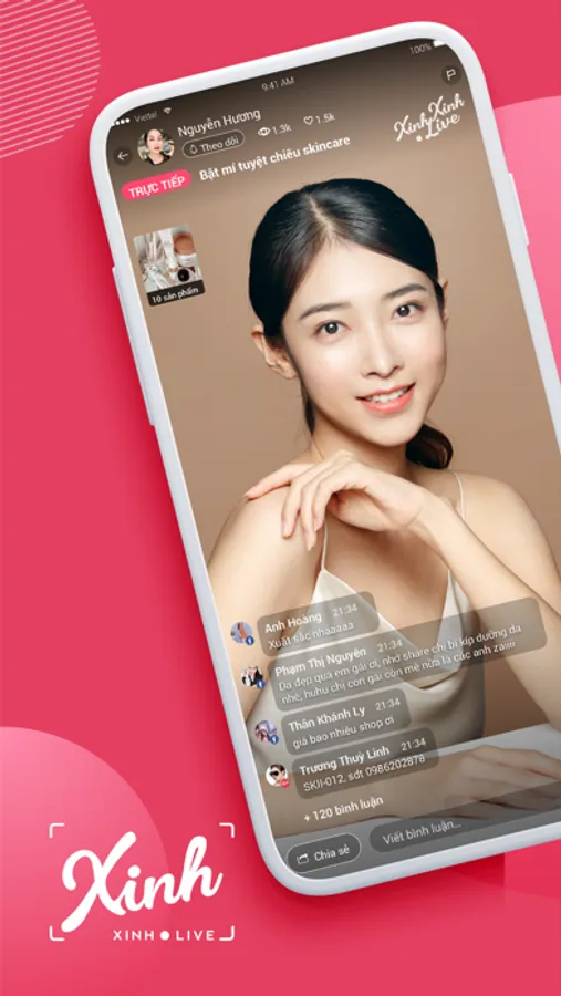 XinhXinh là ứng dụng livestream bán hàng có tích hợp tính năng làm đẹp. Ứng dụng cộng nghệ trí tuệ nhân tạo (AI) tân tiến nhất để phân loại bình luận, phân tách đơn hàng theo kịch bản có sẵn.
