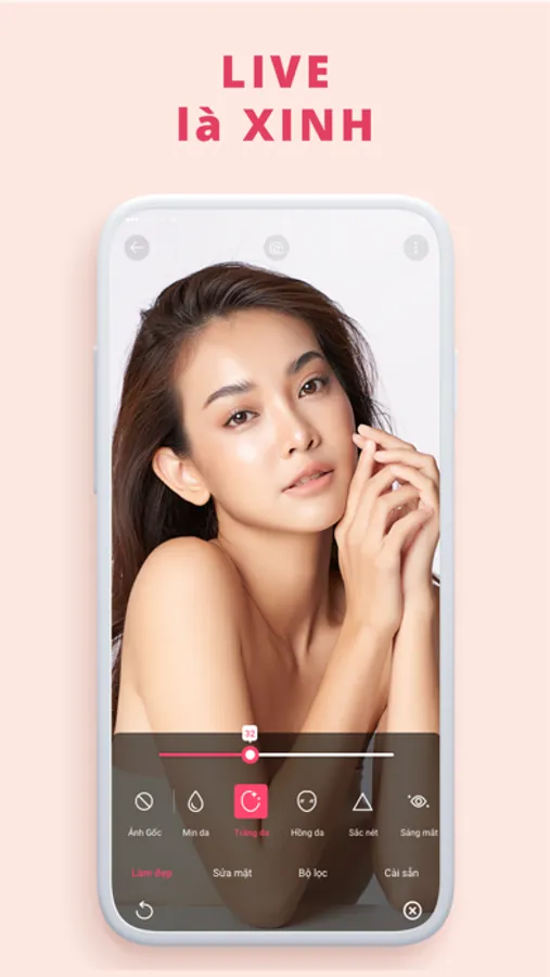• Sở hữu một gương mặt V-line cùng làn da trắng hồng và mịn màng không tì vết với các hiệu ứng làm đẹp lung linh đầy mê hoặc.