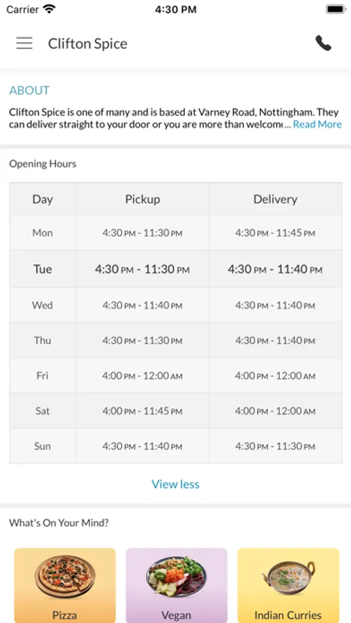 Order food online in Nottingham! It's so easy to use, fast and convenient. Try our new, online app which contains our entire takeaway menu. The Clifton Spice is located in Nottingham. You can now order online, all your favorite dishes and many more delicious options, and have them delivered straight to your door in no time at all.