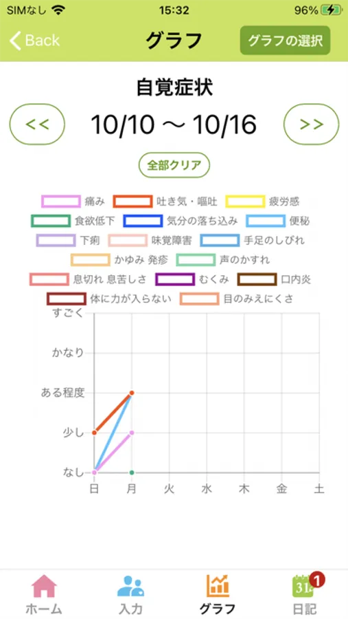 ・副作用の症状は項目ごとに5段階の程度で記録できます。