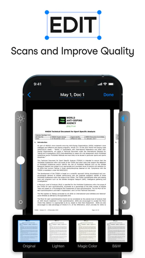 Crop, polish, sign, stamp and enhance new or saved documents. Edit anytime!