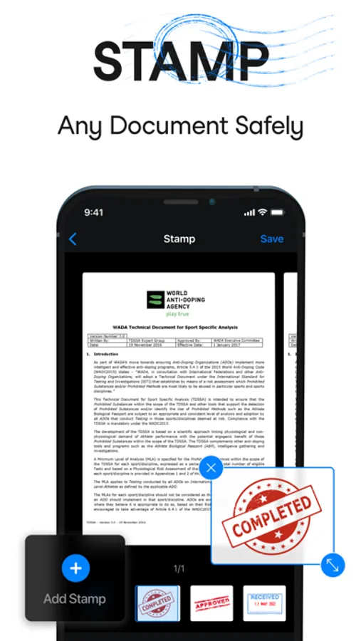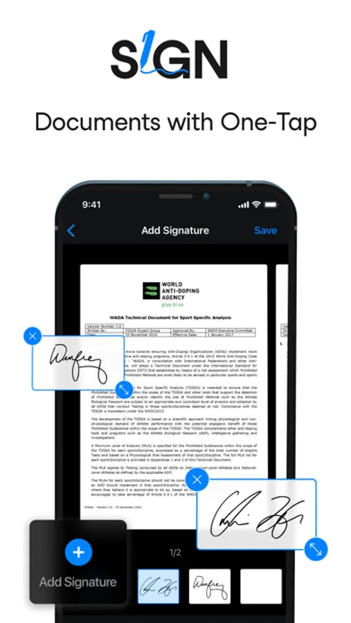 Draw, scan or import your signature and sign documents with a simple touch. Along with your signature easily stamp your document and sign it.