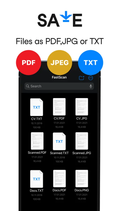 Scan any document instantly with your mobile device by just a few steps. Save as PDF,JPG or ZIP format.