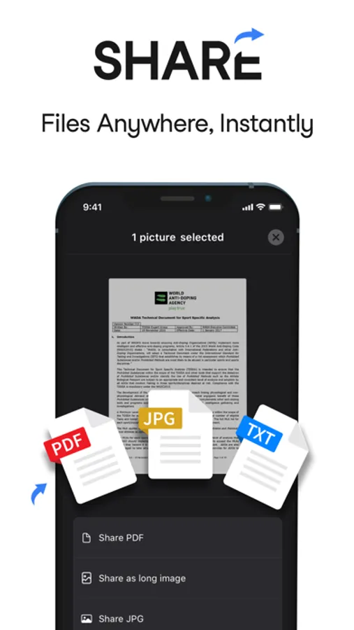 After you sign your documents export scans as PDF, JPG, ZIP. Share anytime, anywhere.