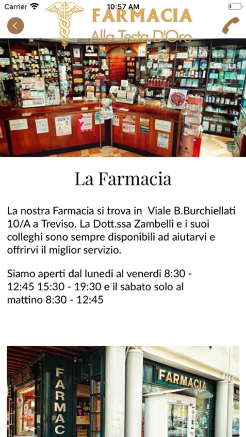 L'App della Farmacia Alla Testa D'Oro di Treviso ti permette di avere il tuo farmacista di fiducia sempre a portata di mano con consigli, informazioni, prenotazioni, ordini, richieste di prodotti e servizi in farmacia.