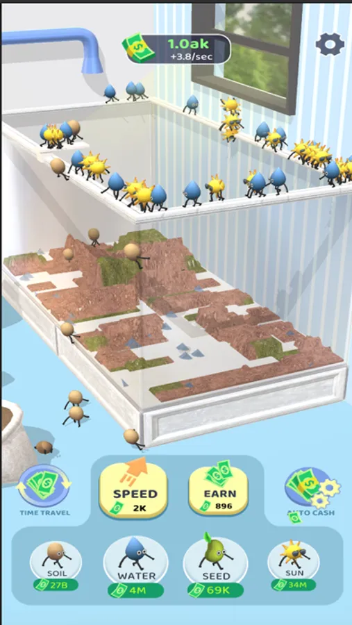 Idle creation gives you a once in a lifetime opportunity to make your dream landscape inside an Aquarium , in this unique game you have to create a scenery inside an aquarium by using Soil, Water , Seeds and Sunlight .