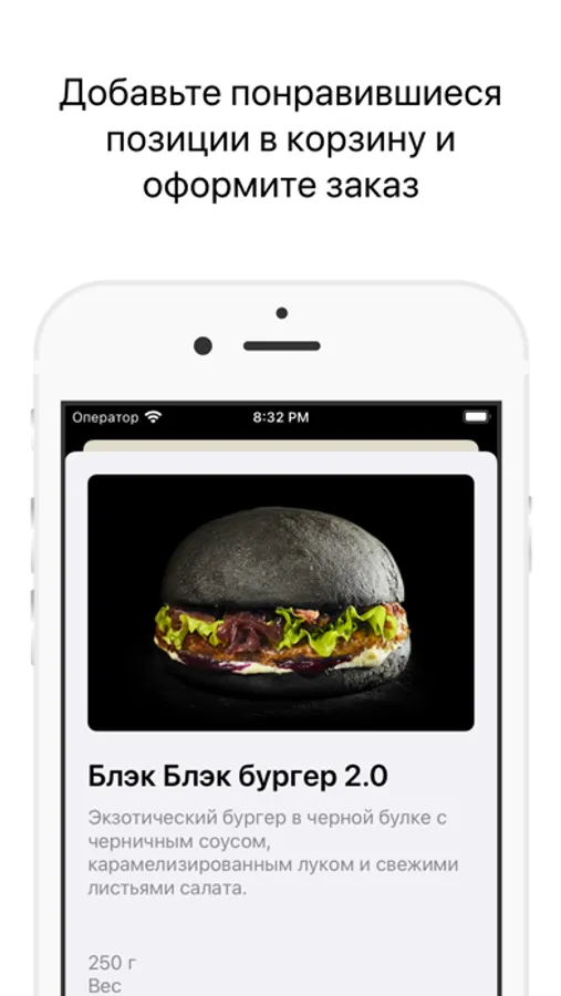 Как сделать заказ в приложении “Burger Club”: выберите понравившиеся позиции из меню, добавьте их в корзину и перейдите на экран оформления заказа (по нажатию на иконку корзины).