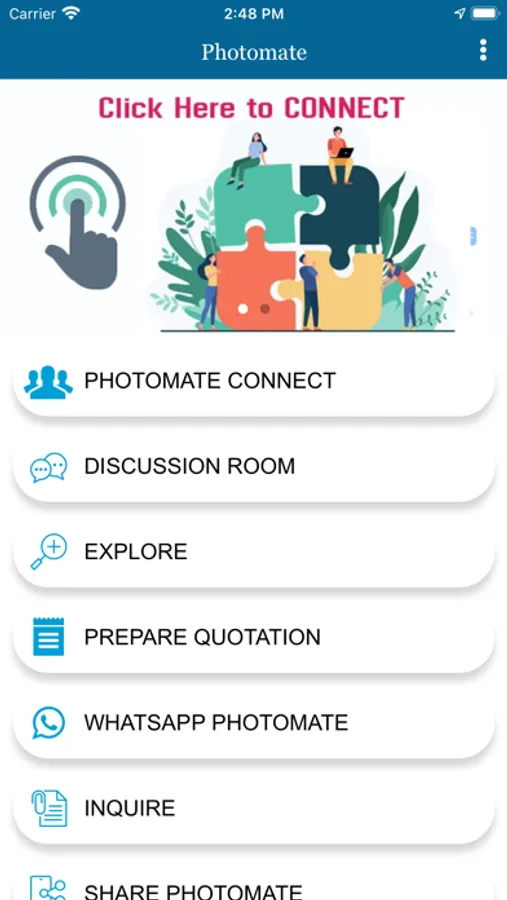 Photomate is a specially designed B to B app to connect the photography community of India. Users related to the photography community can connect with each other directly to share their business like booking transfer orders, printing, editing and many more...