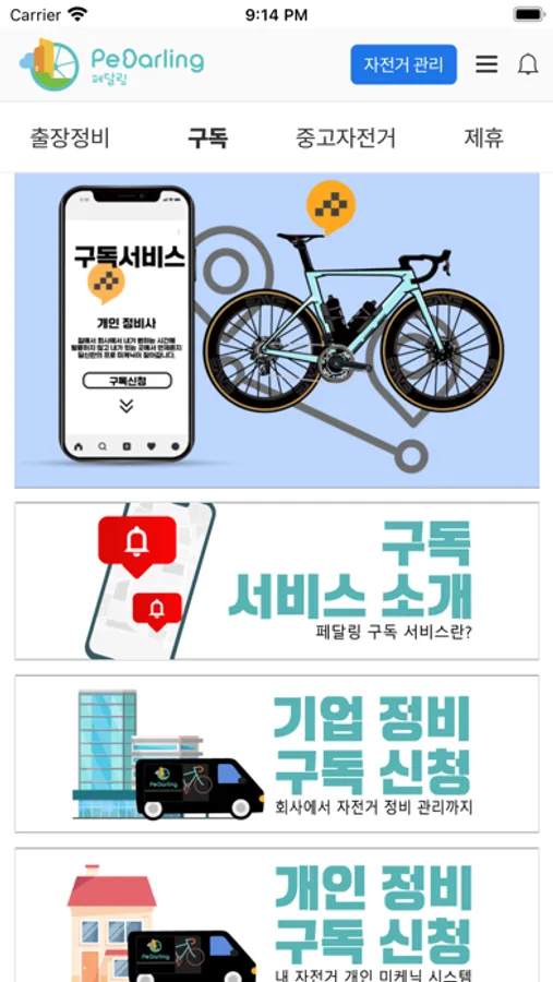 거기에 수리기간에 맞춰 내 자전거의 상태와 관리현황 알려주는 통합 자전거 관리앱입니다.