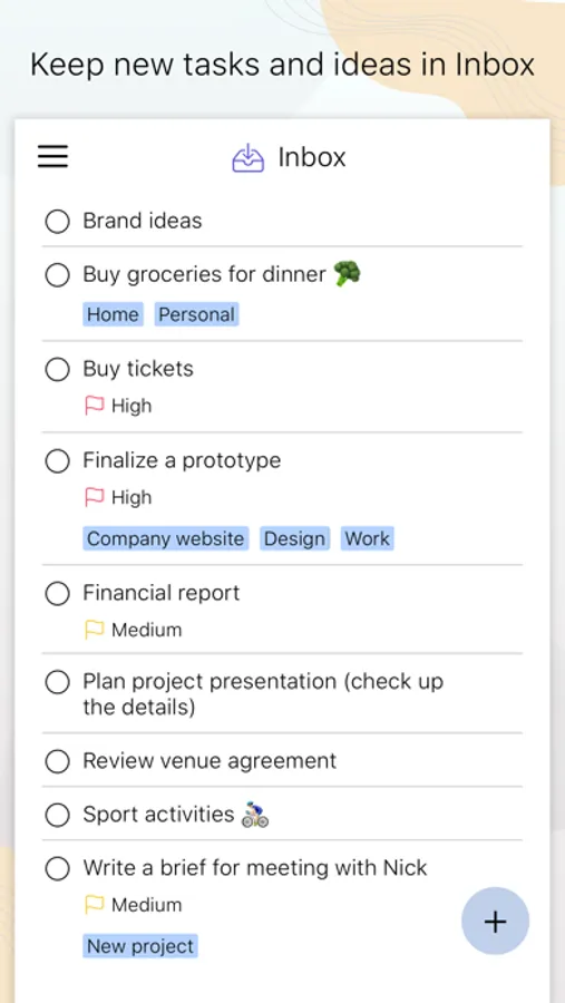 • New tasks, ideas and thoughts are kept in the Inbox unless you decide to add them to your schedule.