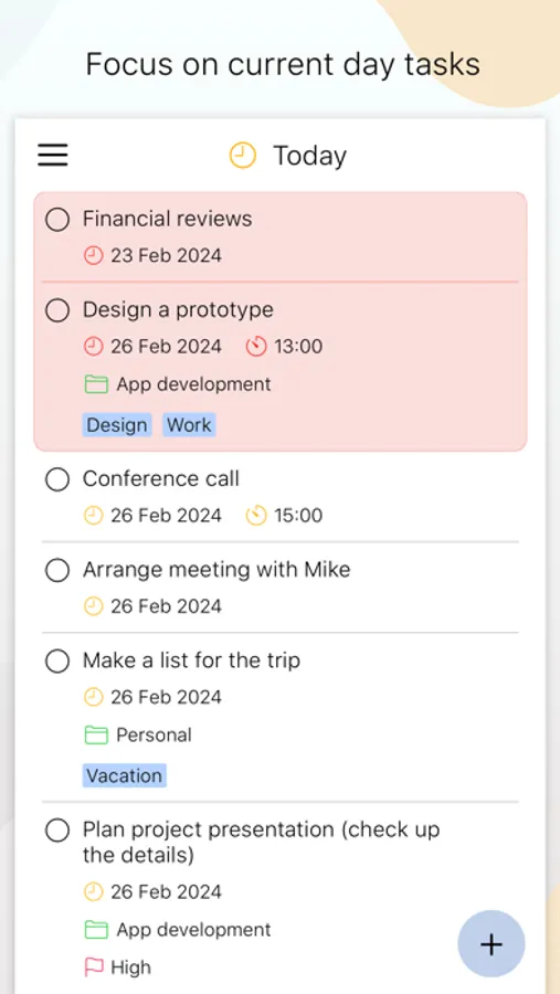 • The most important tasks can be marked with the priority levels.
