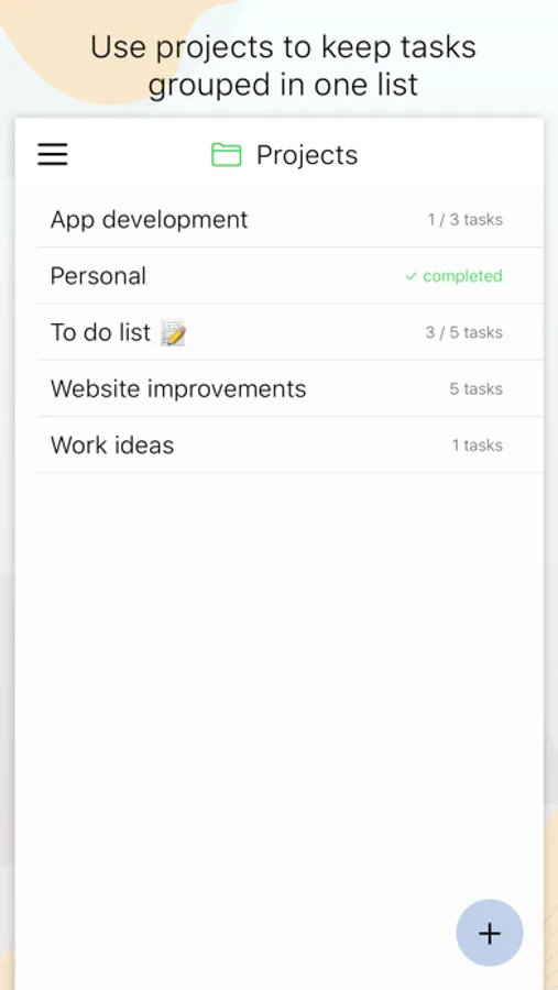 • Projects are used to keep tasks grouped in one list.
