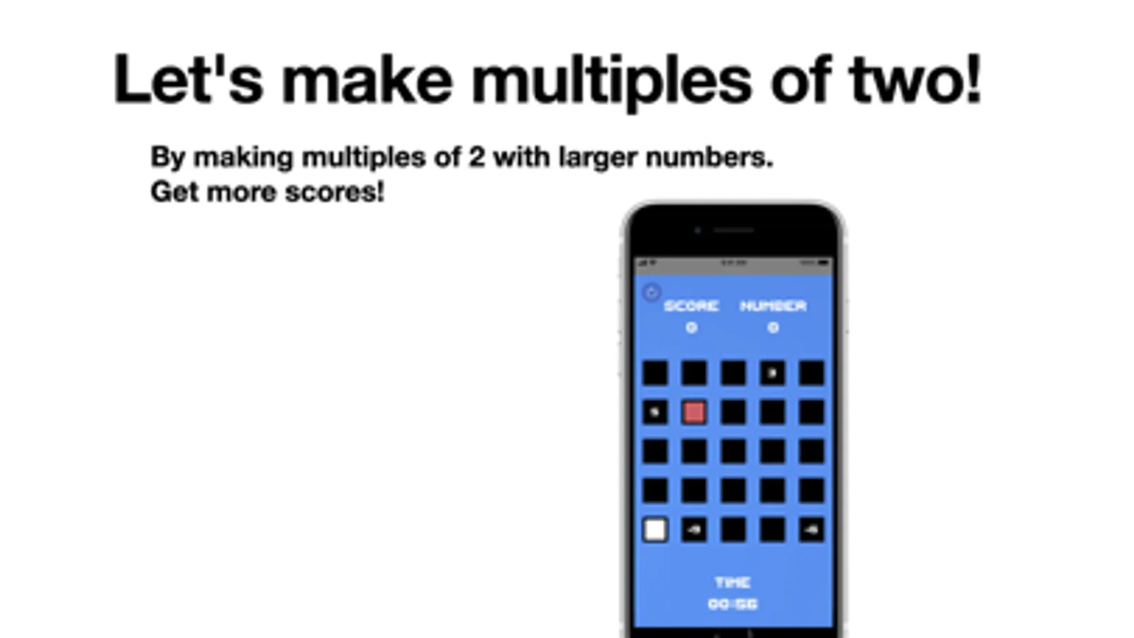 Add up the numbers on the grid within a minute to make multiples of 2. By entering the red frame, the number divided by two is added to the score.