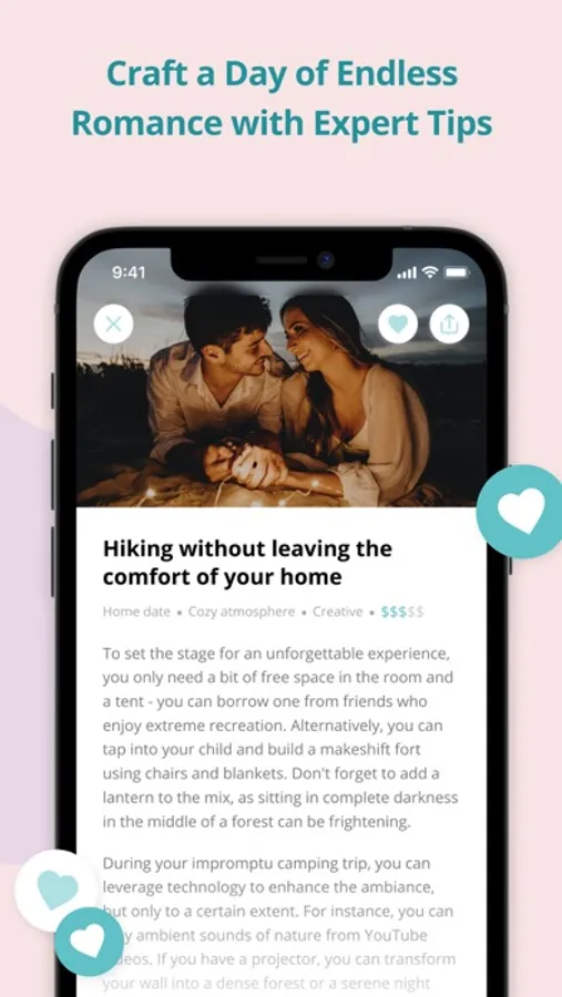 All the date ideas are broken down into cards. Each card has valuable tips to help you plan your date. A trip to the racetrack, culinary masterclass, or adventure quest? We have scenarios for all kinds of couples, every taste and budget.