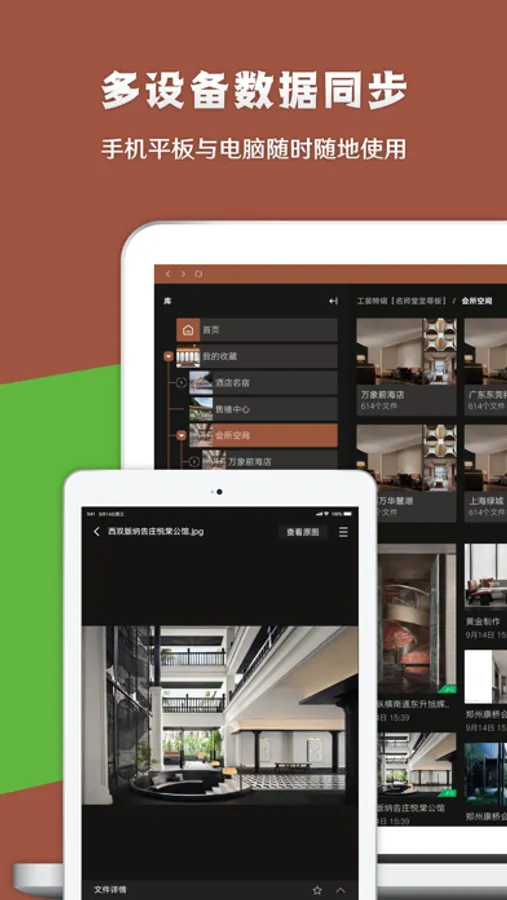 支持手机、平板、电脑随时随地数据同步浏览文件。