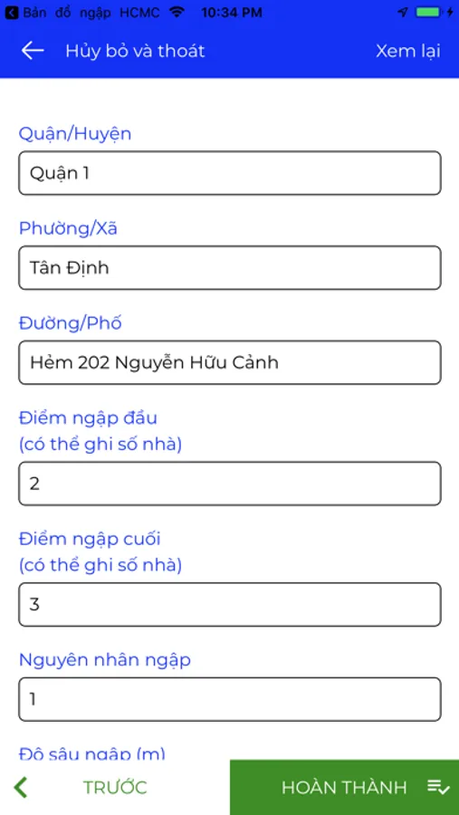 Ứng dụng hỗ trợ cán bộ hiện trường báo cáo ngập theo điểm, đoạn, và đoạn ngập thường xuyên trong phạm vi Thành Phố Hồ Chí Minh.