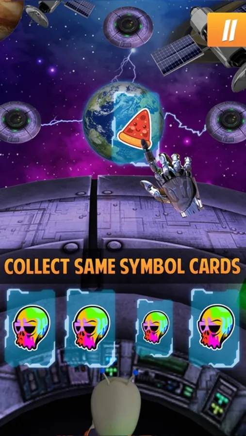 Initially, at the start of the game, there will be an Alien flying over a spaceship to capture all galaxy planets, and to win from each opponent he must collect at least 4 infinity symbols of the same type. Multiple cards with different symbols are distributed to each player. The player needs to match the color or the number of bypassing cards to opponents. In case if the player, has a different card he will pass it to another player to get a different symbol card and will save the card of the same symbol.