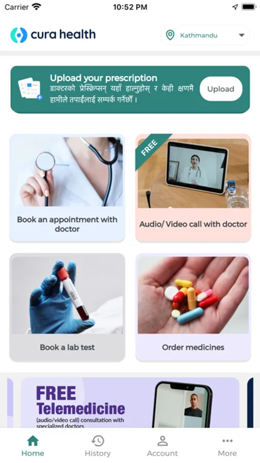 Users can book an appointment with the Cura Health doctors and clinics. Telemedicine feature allows users to consult with the doctor online.