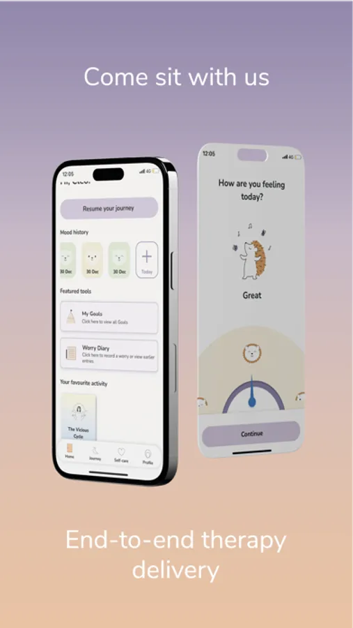 Track your progress with our unique therapy log, allowing you to read your thoughts from previous sessions. Retake the screening tool to see how your symptoms have reduced over time. Review your therapy goals and see your efforts in your final session summary.