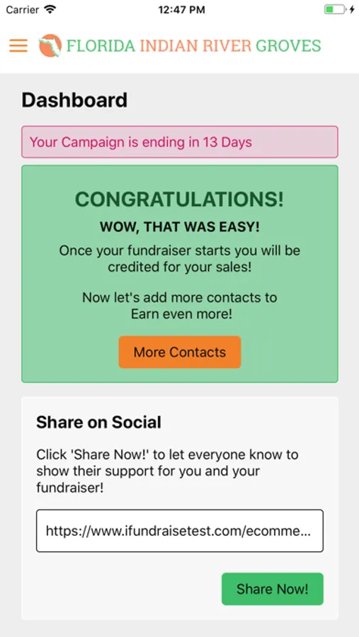 Here’s how it works: You’ll quickly create an account, linking it to your organization’s fundraising campaign. Next, you’ll select contacts already stored on your mobile device to receive text messages and emails as part of an automated marketing program. The final step? Link to your social media accounts with a single click, and provide friends, family, and acquaintances with regular posts directing them to your fruit sale fundraising website.