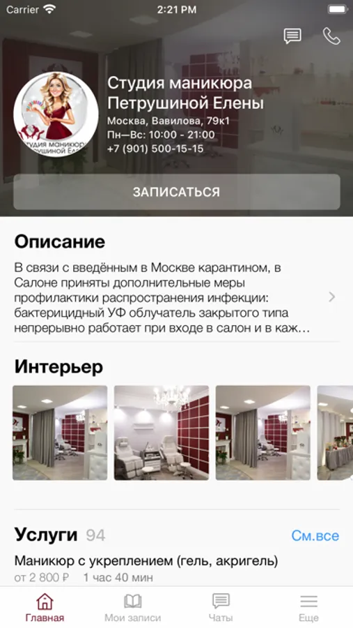 Здесь вас ждет непринужденная и спокойная атмосфера, вежливое обслуживание и широкий спектр профессиональных услуг ногтевого сервиса.