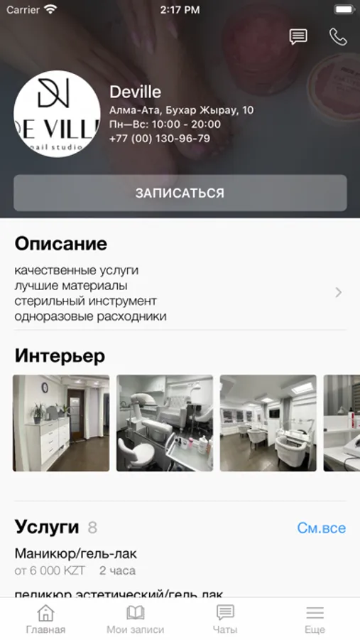 • создавать запись по всем услугам (любимым мастерам, которым доверяете)