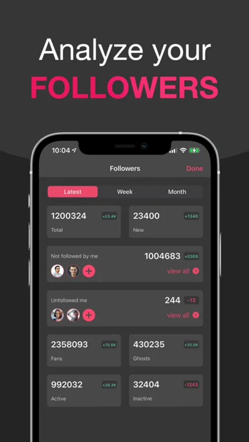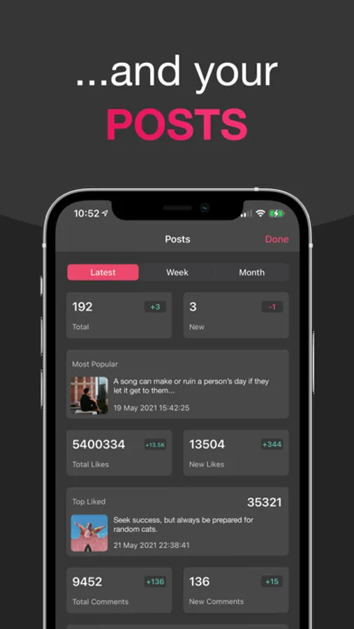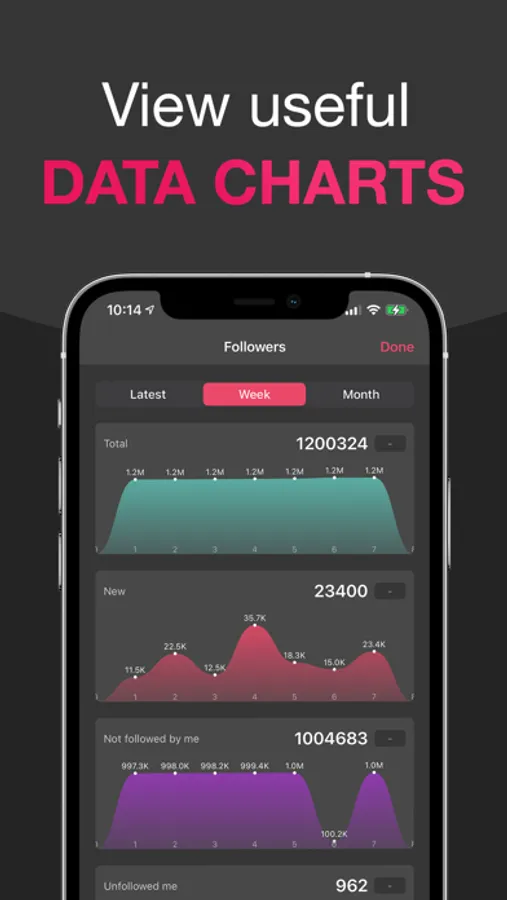Get everything about your most recent Followers, Following and Posts! Also view your statistics trends during the week and month!