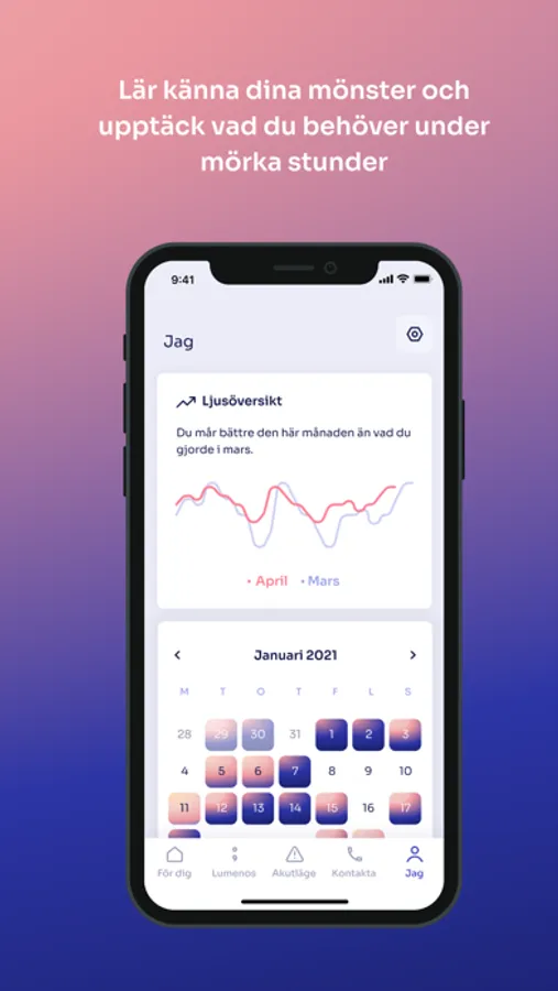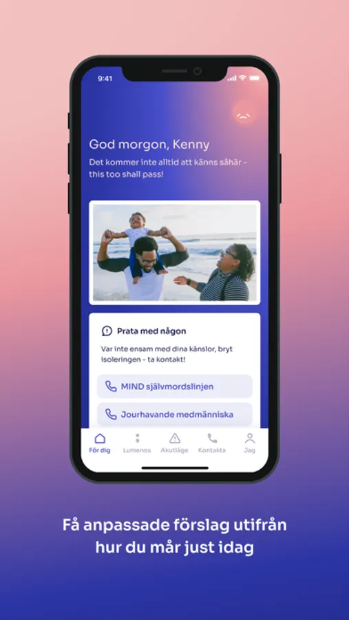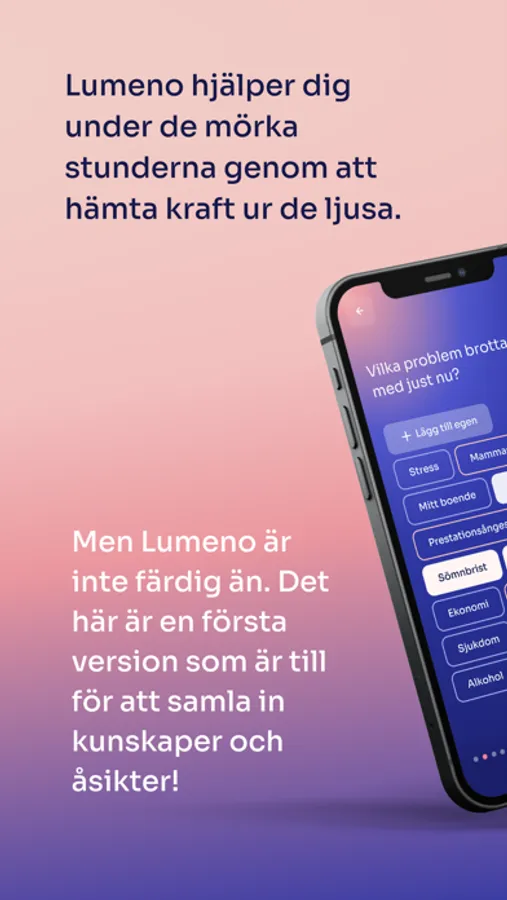 Lumeno är en digital följeslagare som ger dig kraften att hjälpa dig själv under de mörka stunderna genom att hämta kraft från din ljusa.