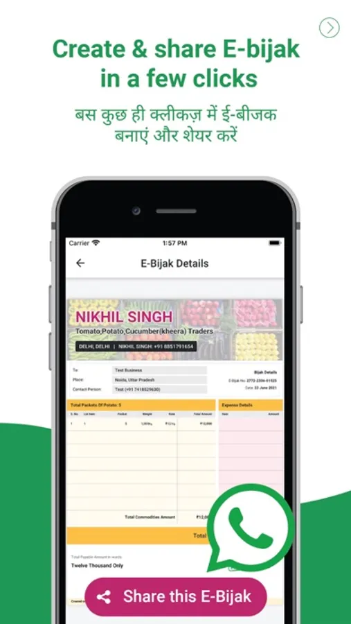 Replace paper bijak with E-Bijak. Just create & share your digital bijak with the traders on phone.