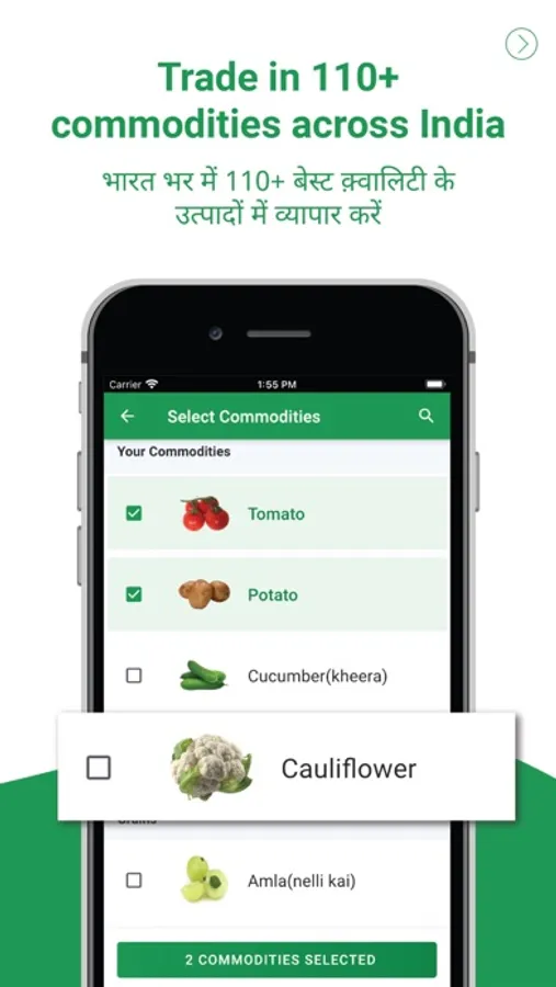 Easily buy/sell best quality agri commodities like onions, potatoes, tomatoes, fruits, pulses, grains and more. It’s like an agricultural commodity market on your phone!