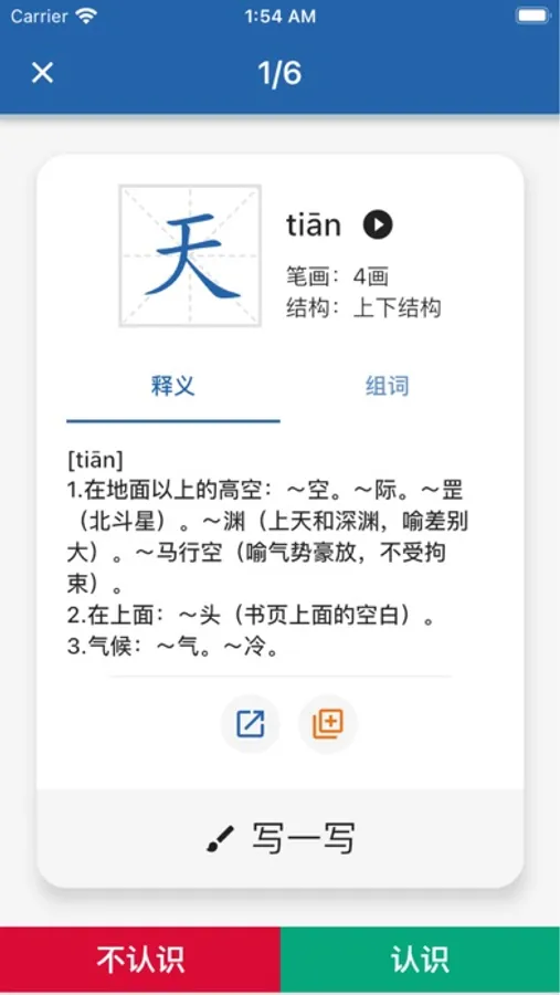 通过科学的记忆算法,自动安排复习,帮助你轻松快速的记忆字词;