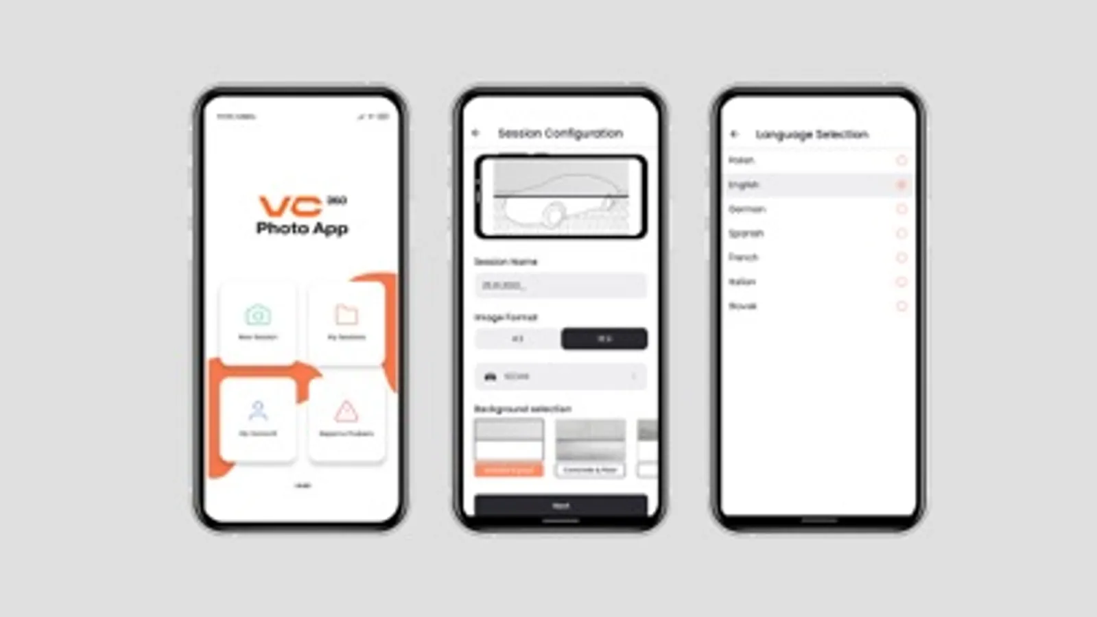The VC360 Photo App controls the process of taking photos of vehicles. It reduces the time taken to perform sessions while improving their quality and consistency. It guides the user step by step and can be used without training.