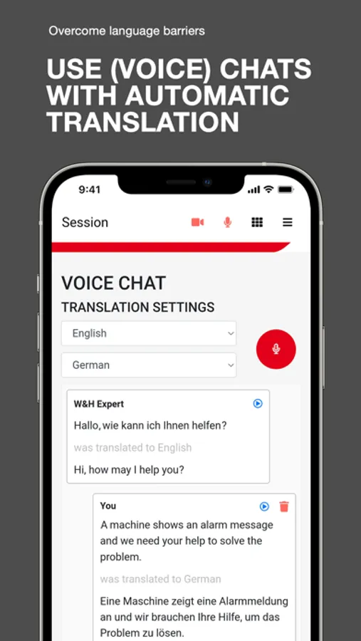 Work side by side with the experts of the W&H Information and Diagnostic Centre (IDC). Our service engineers digitally support you during troubleshooting as if they were directly on site – thanks to audio and video transmission in real time. Integrated chat functions and the display of technical documents or instructions facilitate the exchange of information. Benefit from fast support without waiting times, reduce downtime and increase your productivity – with Service Sight by Sight.