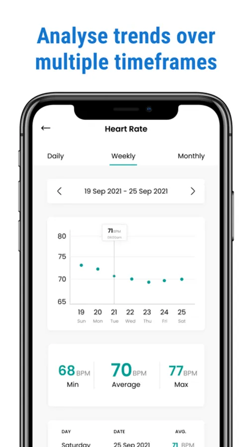 HealthKit: We integrate with the health app (HealthKit) to read and track your multiple vitals data and show them in a beautiful way.