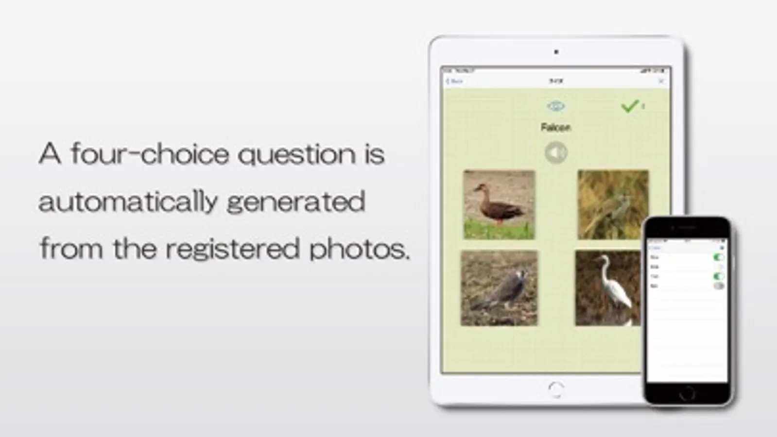 Let's play by solving the 4-choice quiz that is automatically generated from the registered photos!