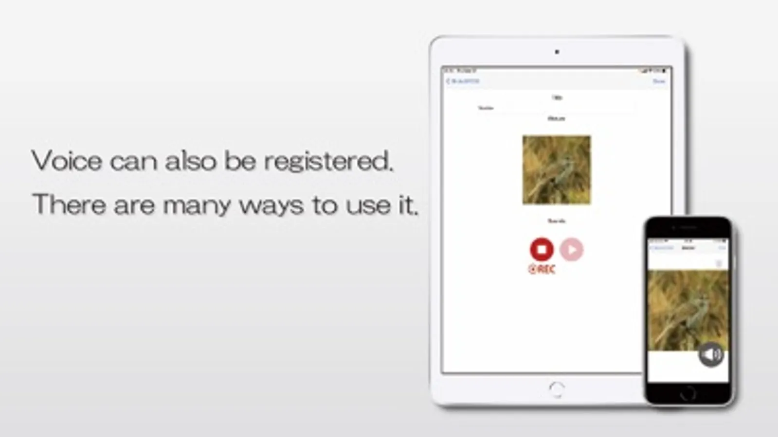 When registering a photo, you can register the text (title) and recorded voice together, so there are many ways to use it!