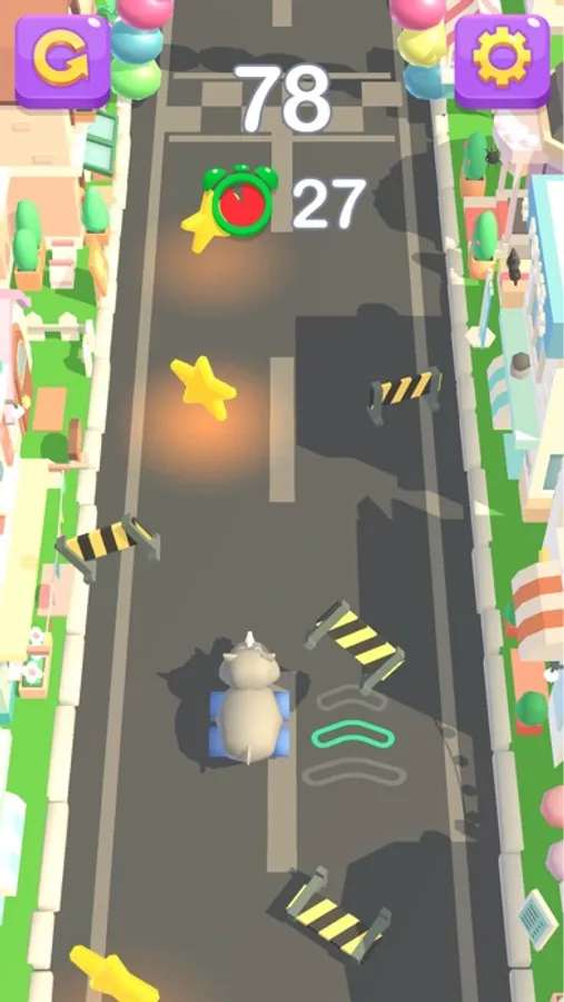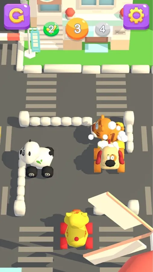 Every 5th level play Racing mini game, try to collect ALL STARS to get the highest score on your way to the finish line. Use boosters to speed up your toy car and avoid blockers to not lose speed.