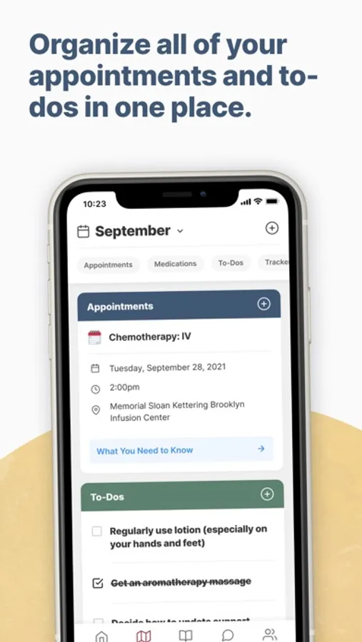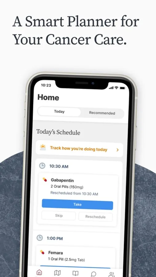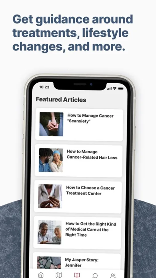 The Jasper Cancer Care Companion makes it easy to keep track of your day to day care while providing recommendations that are personalized to your diagnosis and treatment. Manage your appointments, track your medications, and rate your symptoms and mood, all in one place with Jasper.