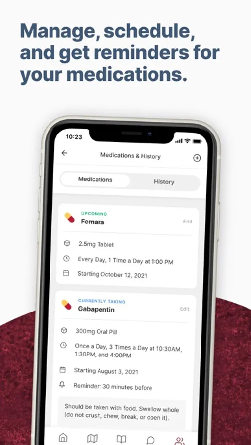- See all of your medications, and how and when to take them, in one easy-to-manage list.