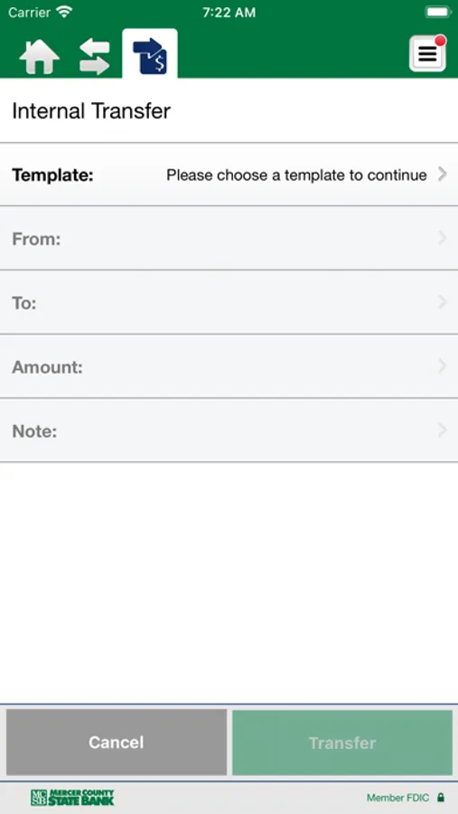 • Transfer money between accounts