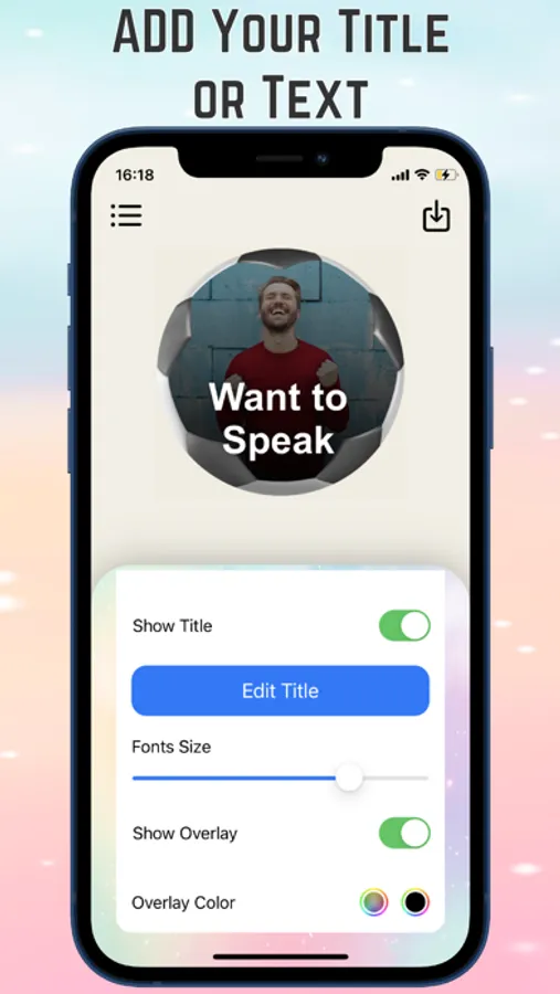 4. Add the title or name text, select your favorite font style and size, then tap the text to move.