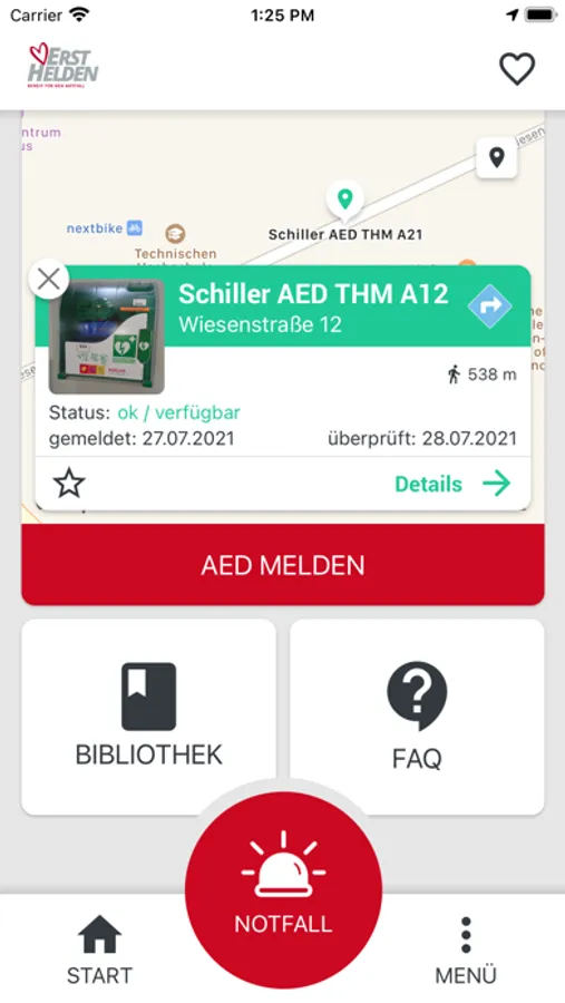 Die App ErstHelden bringt dir das Thema „Erste-Hilfe“ näher und hilft dir in einer Notfallsituation bei der Suche nach einem AED.