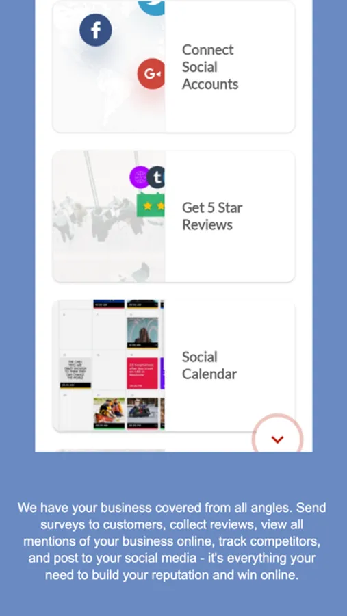 The SuperCat 360 app gives you on-the-go access to Testimonial Collector, Reputation Manager, Social 365, and Competition Tracker. Send surveys to customers straight from your phone, monitor all your reviews from one place, and keep an eye on what people are saying about your top competitors online.