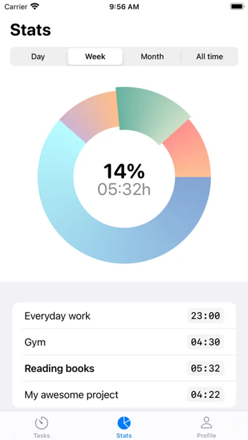 Tracking is separated by days, weeks and month so you can easily view whole statistic for required periods of time.