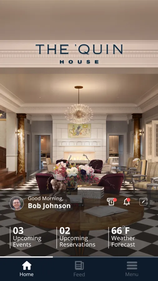 The Quin House Mobile App can monitor statements, explore the directory, stay updated on club events, make reservations, and more.
